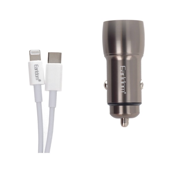Earldom ES-CC15 Σετ Φόρτισης Αυτοκινήτου Με 2 Θύρες USB-C και Καλώδιο USB-C σε Lightning
