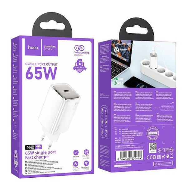 Hoco N48 Αντάπτορας Πρίζας USB-C GaN 65W Power Delivery