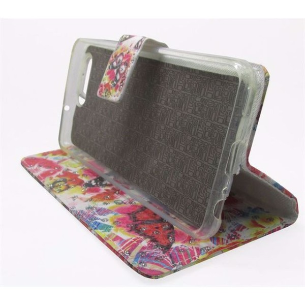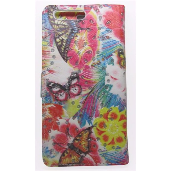 • Θήκη πορτοφόλι δερματίνης με στρασάκια και σχέδιο πεταλούδες ειδικά σχεδιασμένη για τέλεια εφαρμογή με τη συσκευή σας