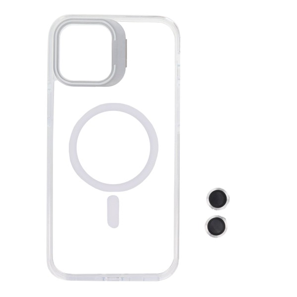 • Θήκη με σιλικόνη περιμετρικά και όψη πλαστική διάφανη magsafe με στήριγμα κάμερας και προστατευτικά κάμερας ειδικά σχεδιασμένη για τέλεια εφαρμογή με τη συσκευή σας