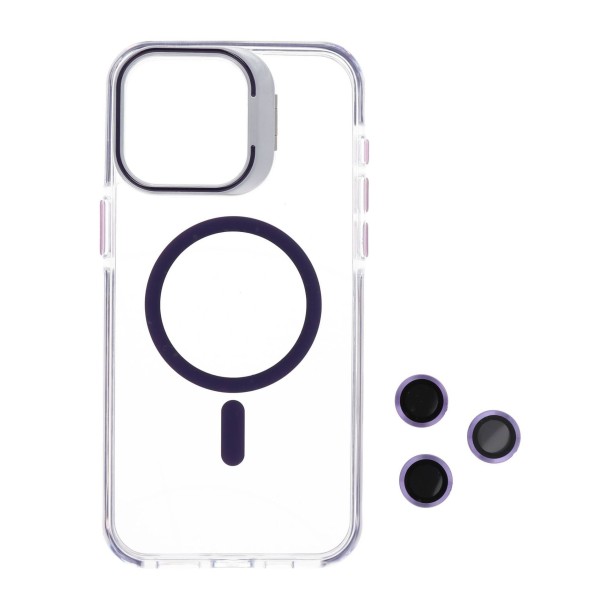 • Θήκη με σιλικόνη περιμετρικά και όψη πλαστική διάφανη magsafe με στήριγμα κάμερας και προστατευτικά κάμερας ειδικά σχεδιασμένη για τέλεια εφαρμογή με τη συσκευή σας