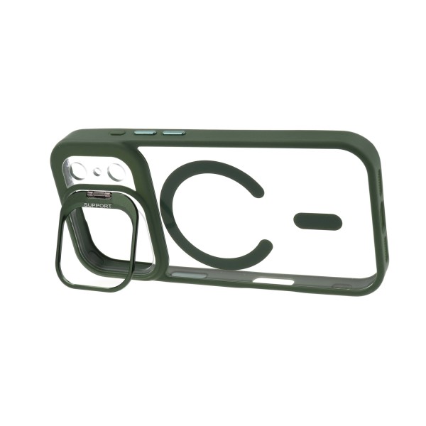 • Θήκη με σιλικόνη περιμετρικά και όψη πλαστική διάφανη magsafe με στήριγμα κάμερας και προστατευτικά κάμερας ειδικά σχεδιασμένη για τέλεια εφαρμογή με τη συσκευή σας