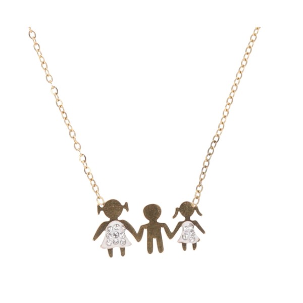 Ατσάλινο Κολιέ Γυναικείο Με Στρασάκια Μαμά, Κοριτσάκι Και Αγοράκι