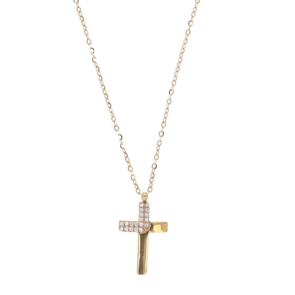 Ατσάλινο Κολιέ Γυναικείο Με Στρασάκια Σταυρός