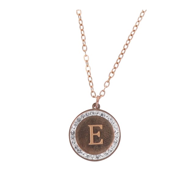 Ατσάλινο Κολιέ Γυναικείο Μονόγραμμα Με Στρασάκια - Ε
