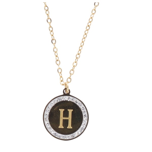 Ατσάλινο Κολιέ Γυναικείο Μονόγραμμα Με Στρασάκια - Η