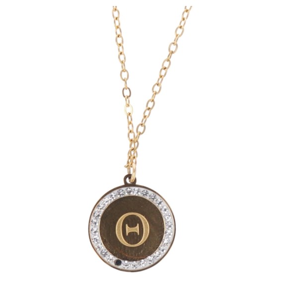 Ατσάλινο Κολιέ Γυναικείο Μονόγραμμα Με Στρασάκια - Θ