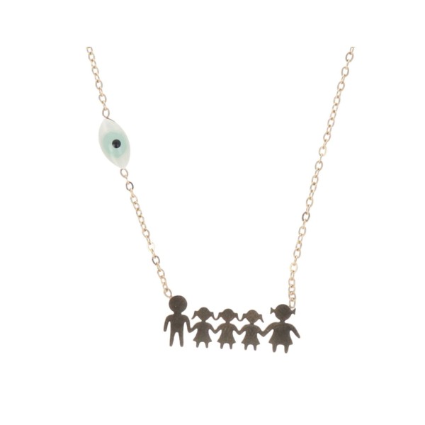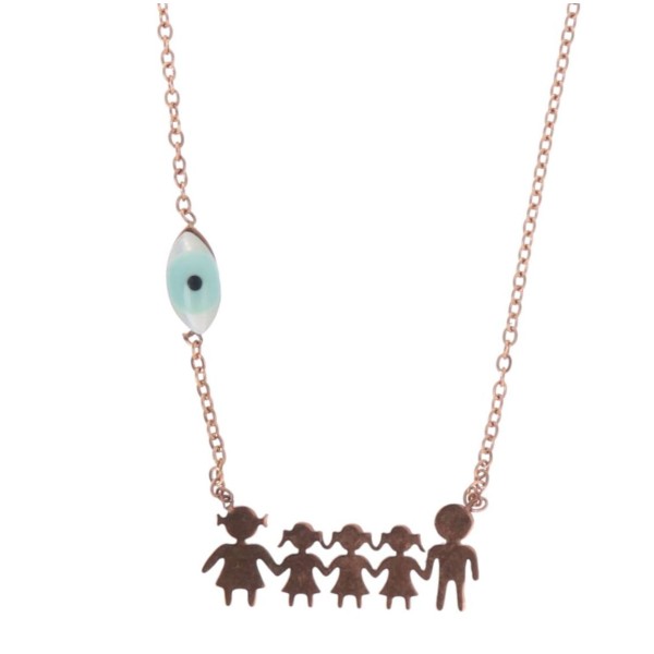 Ατσάλινο Κολιέ Γυναικείο Οικογένεια Με Ματάκι Μαμά, Μπαμπάς Και 3 Κορίτσια