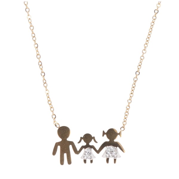 Ατσάλινο Κολιέ Γυναικείο Οικογένεια Με Στρασάκια Μαμά, Μπαμπάς Και Κοριτσάκι