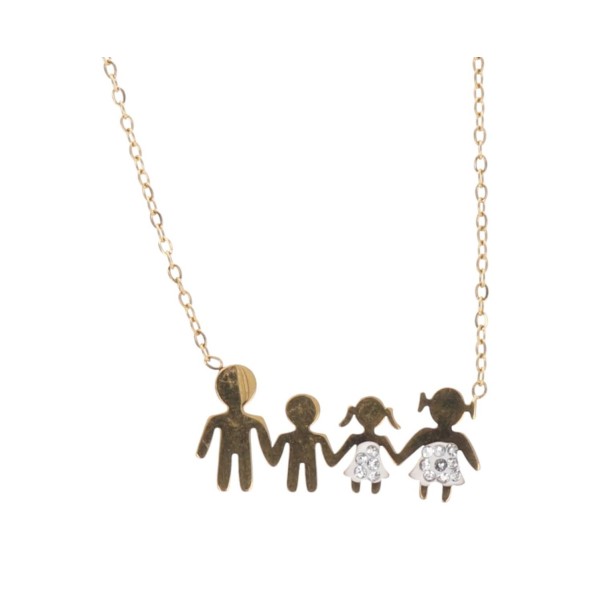 Ατσάλινο Κολιέ Γυναικείο Οικογένεια Με Στρασάκια Μαμά, Μπαμπάς, Κοριτσάκι Και Αγοράκι