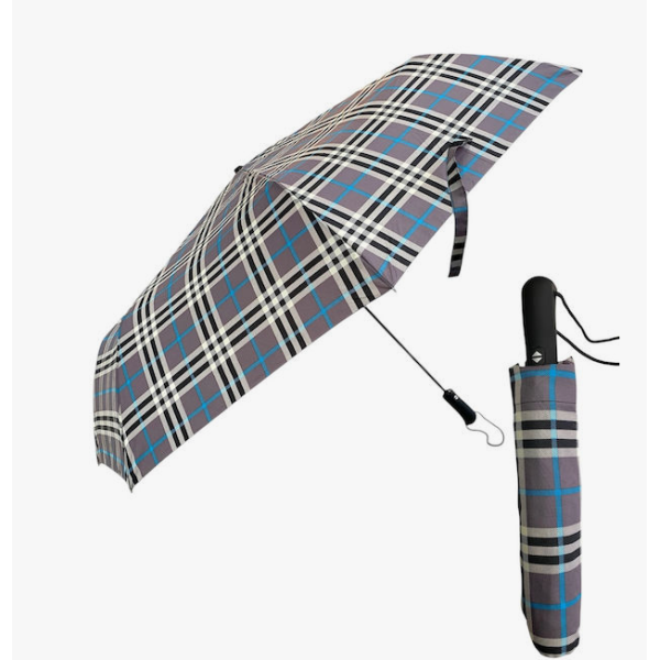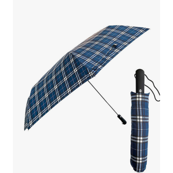 Blue Drops Αντιανεμική Αυτόματη Ομπρέλα Βροχής Σπαστή Καρό