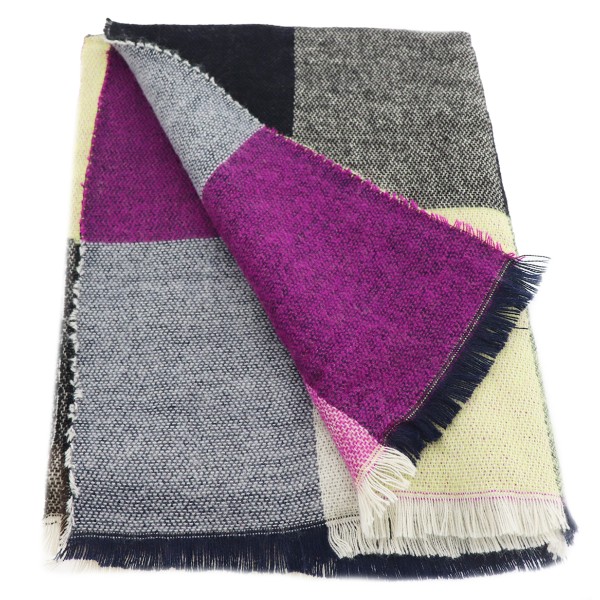 Γυναικεία Πασμίνα Διπλής Όψεως Μαύρο Χρώμα Καρό Μεγάλο Μέγεθος