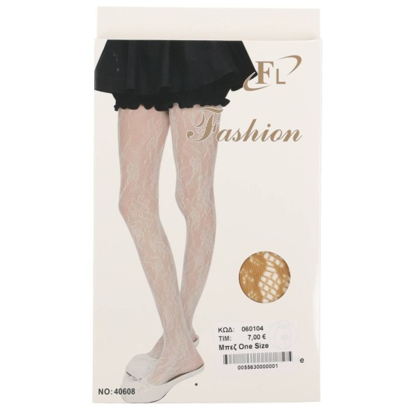 F'L Γυναικείο Διχτυωτό Καλσόν με Φλοράλ Μοτίβο