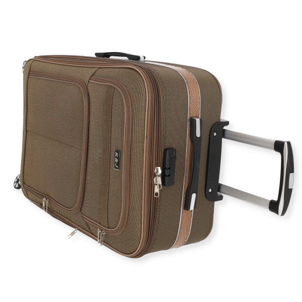 Βαλίτσα Υφασμάτινη της εταιρείας R&J σε καφέ χρώμα.