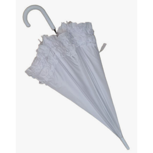 Automatic Walking Stick Bridal Rain Umbrella with Double Row of Ruffles