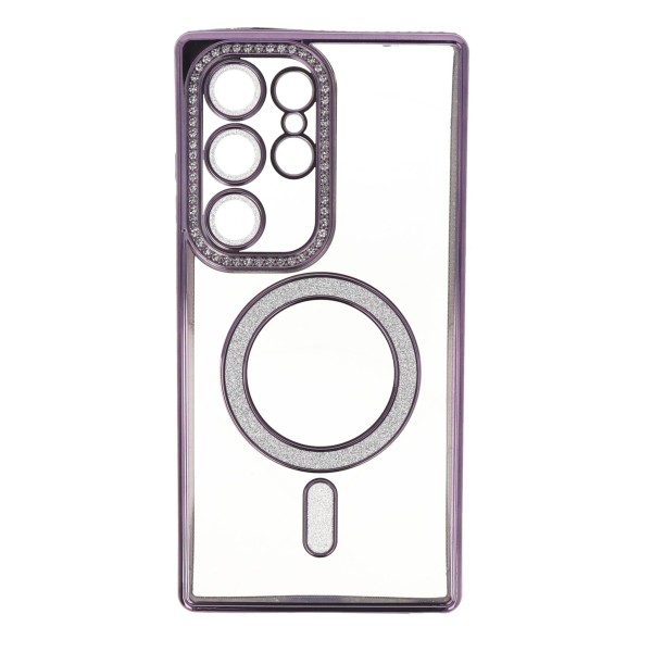 Back Cover Silicone Case With Camera Glass, Magsafe, Rhinestones And Glitter (Samsung Galaxy S25 Ultra)