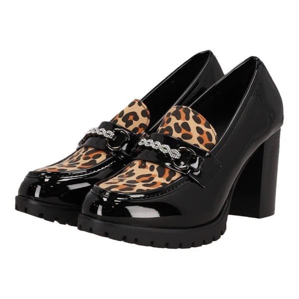 Diamantique Γυναικείες Γόβες Λουστρίνι με Ψηλό Χοντρό Τακούνι και Λεπτομέρεια Στρας