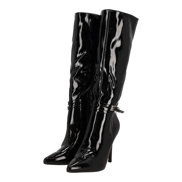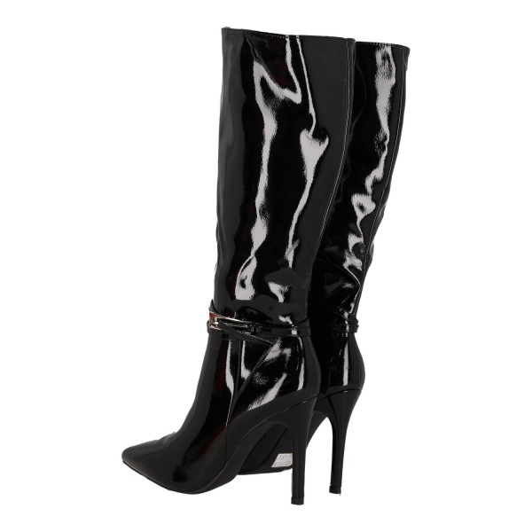 Ideal Shoes Γυναικεία Ψηλή Μπότα Λουστρίνι με Λεπτό Τακούνι
