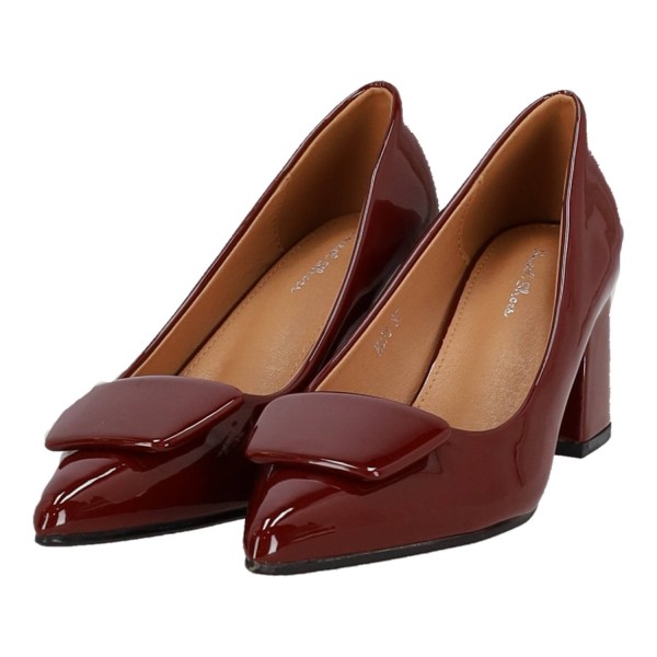 Sweet Shoes Γυναικεία Μυτερή Γόβα Λουστρίνι με Κοντό Χοντρό Τακούνι
