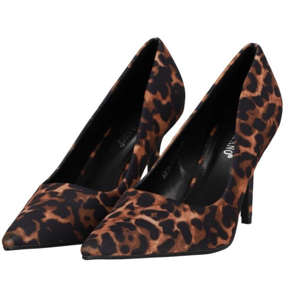 Tulipano Υφασμάτινη Γυναικεία Γόβα με Ψηλό Λεπτό Τακούνι -Leopar